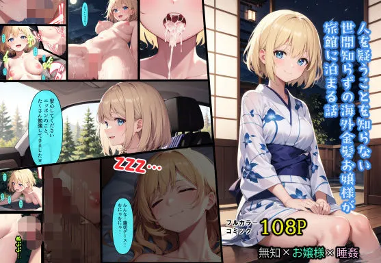 【2024-01-20】に発売した、同人サークル【モダンタイムス】の中出しコレクションです。【人を疑うことを知らない世間知らずの海外金髪お嬢様が旅館に泊まる話】108ページ全てネタバレします。