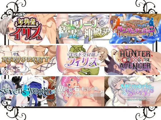 NAGINATA SOFTの過去作6作品を一挙に遊べるお得セット! 本商品は、NAGINATA SOFTの以下作品を一挙に遊べるお得セットです。 ・女勇者イリス ・ヒーローズパーティR ・SEVENS WORLD-セブンスワールド ・異世界で石に転生した俺は女の子を護りたいので地道に強くなる ・エリーナと精霊の神殿 ・ギルド受付嬢フィリス ・ククルとアリシ…